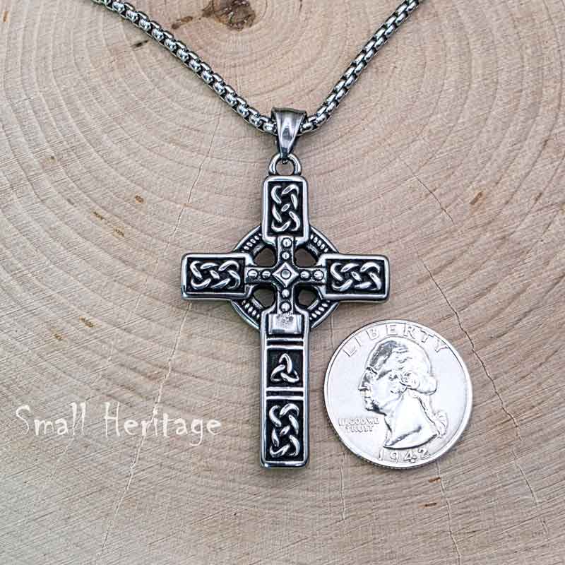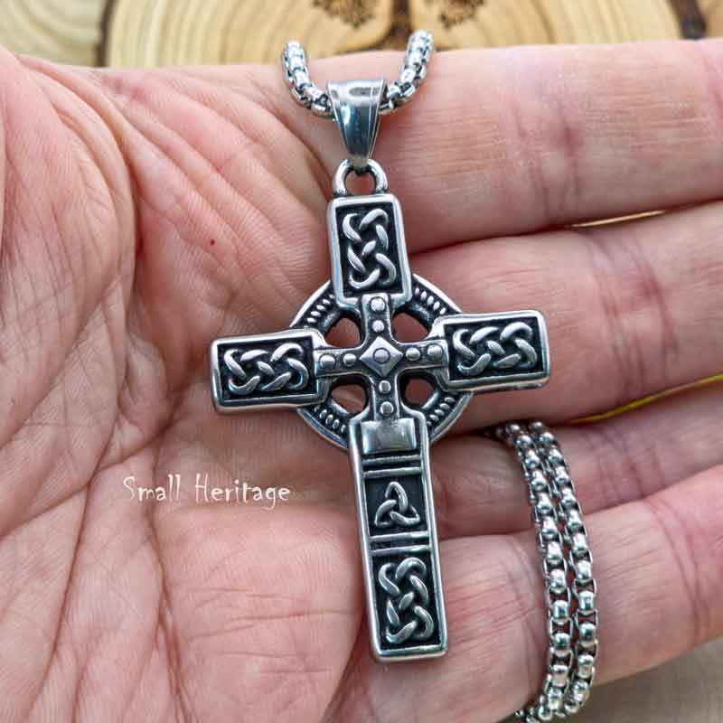 This pendant blends Celtic artistry with clean stainless-steel craftsmanship, producing a modern piece inspired by centuries-old knotwork and symbolism. The large size and polished finish make it a standout accessory for anyone who appreciates Celtic design and strong geometric patterns.