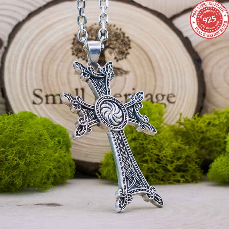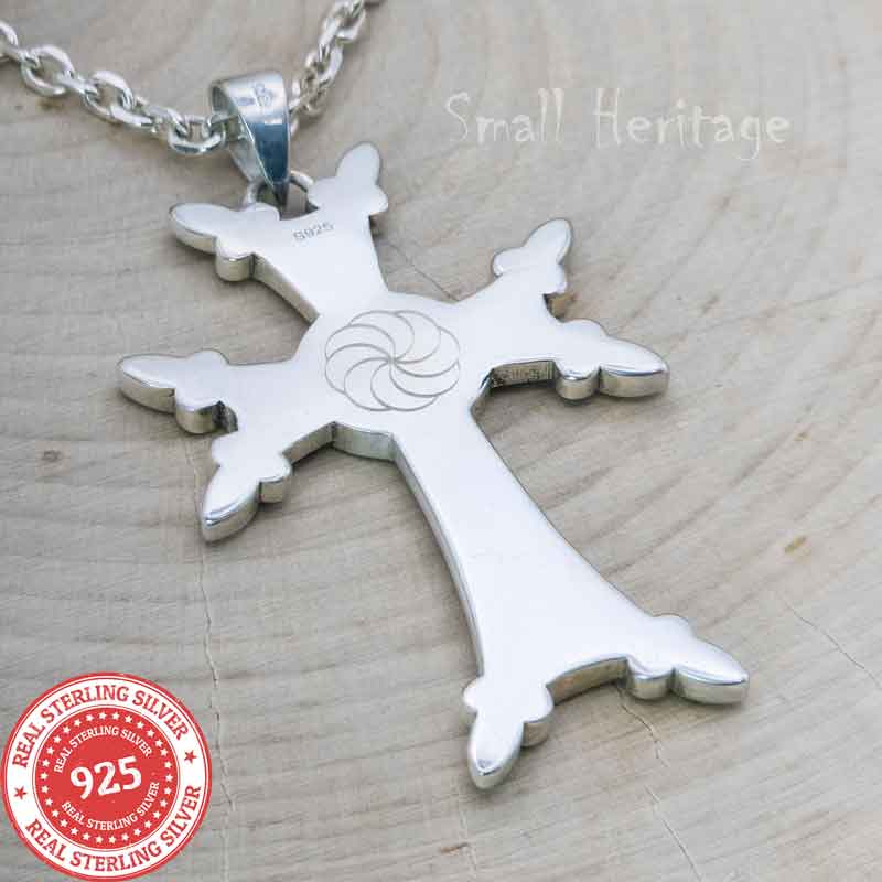 Introducing the Large Armenian Cross Necklace, meticulously handcrafted by the Small Heritage team, a masterpiece in 925 Sterling Silver.