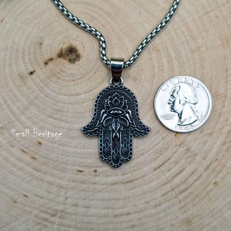 Hand of Fatima (Hamsa) pendant with Evil Eye decorative motif