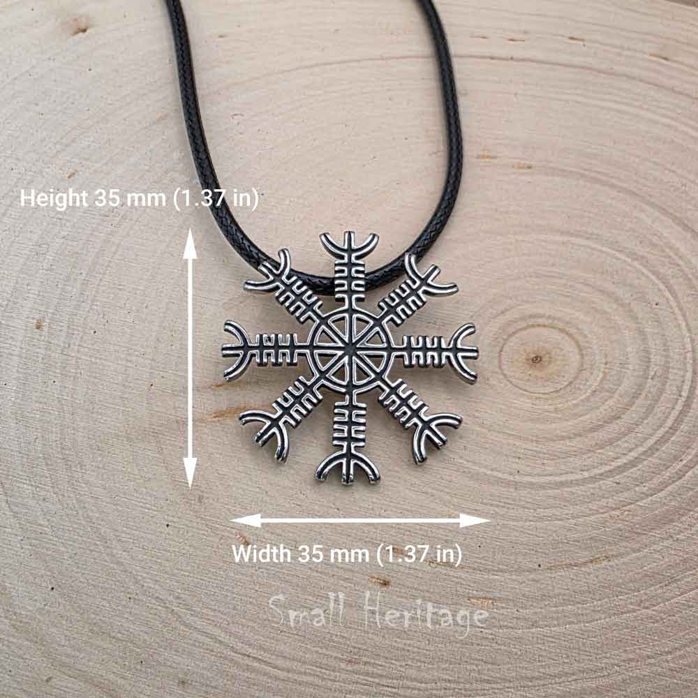 Discover a refined Viking-inspired accessory with this Small Lightweight Helm of Awe Necklace. Crafted from durable stainless steel, this compact pendant features the classic Helm of Awe (Ægishjálmur) design — an iconic symbol in Norse cultural artistry. Paired with a comfortable black waxed rope, it offers a clean minimalist look suitable for both men and women.